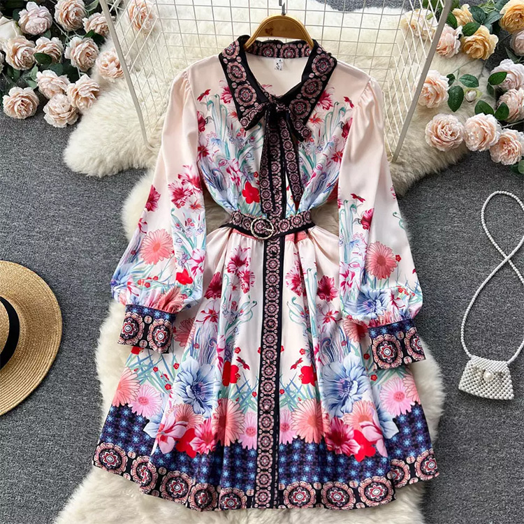 Womne’s V Neck Long Sleeve Dress With Belt Beige