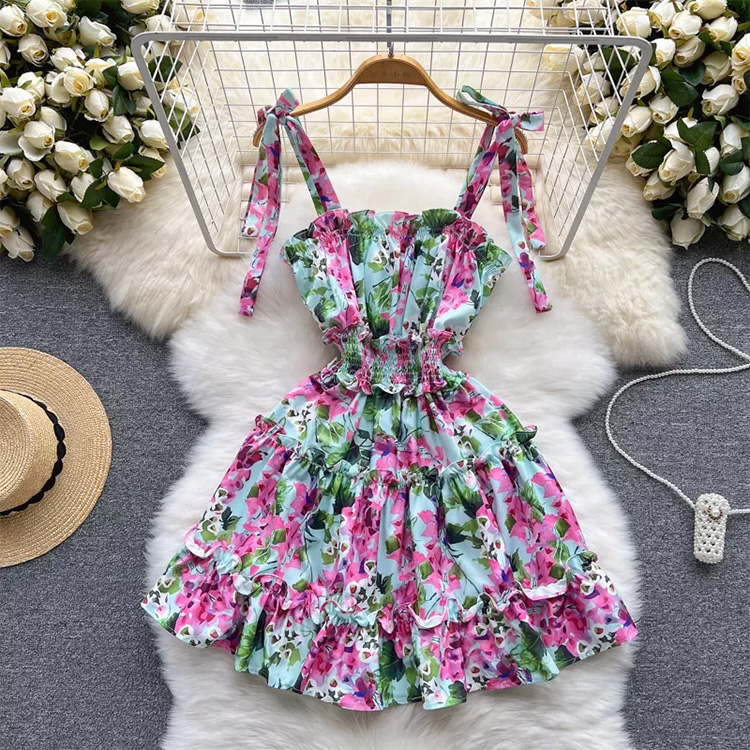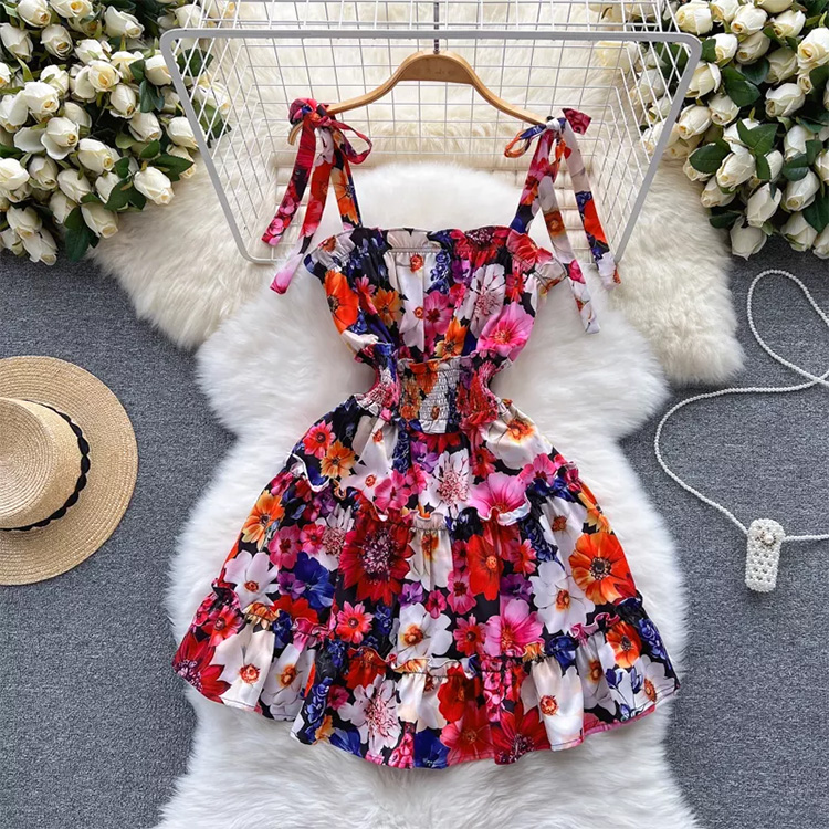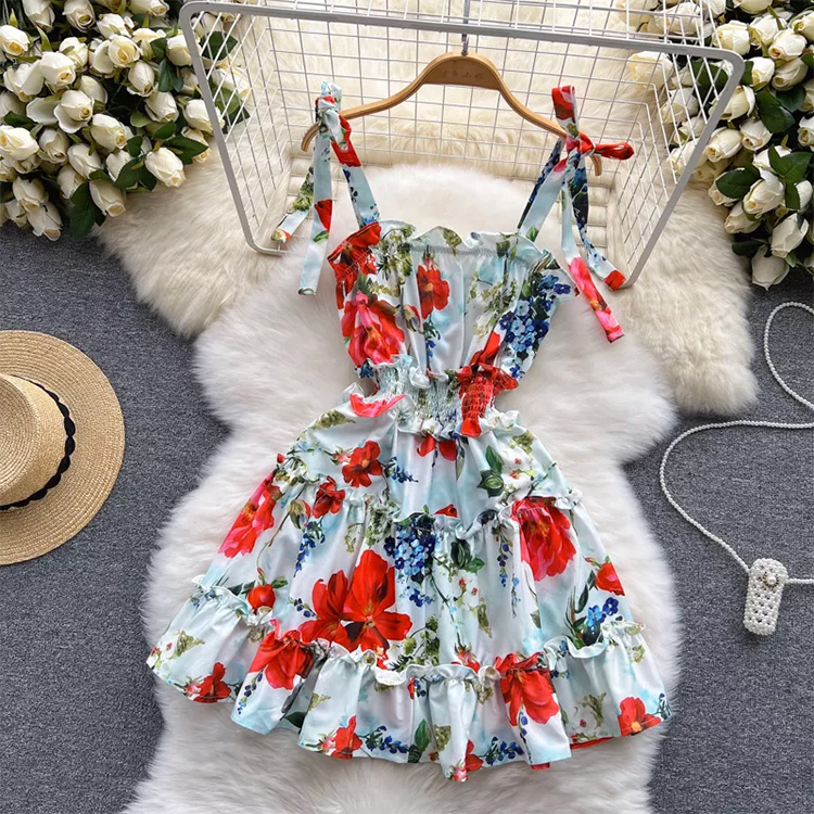 Women’s Summer Vintage Dress Sleeveless White & Red