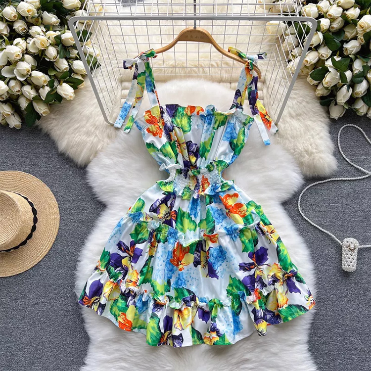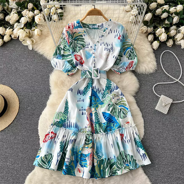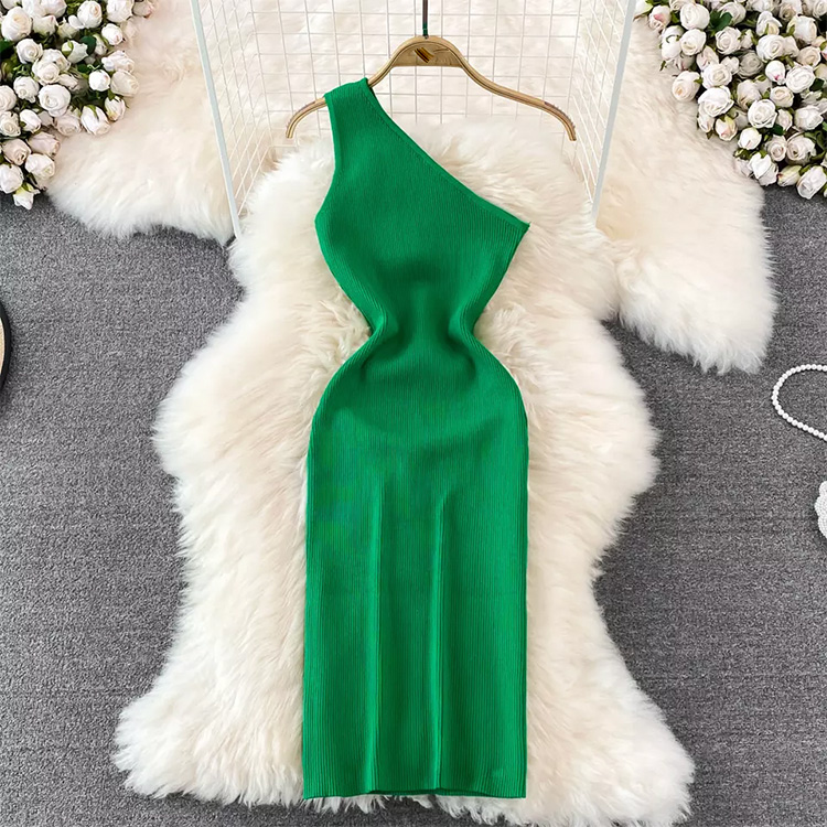 Women’s Summer Inclined Neck Off Shoulder Dress Green