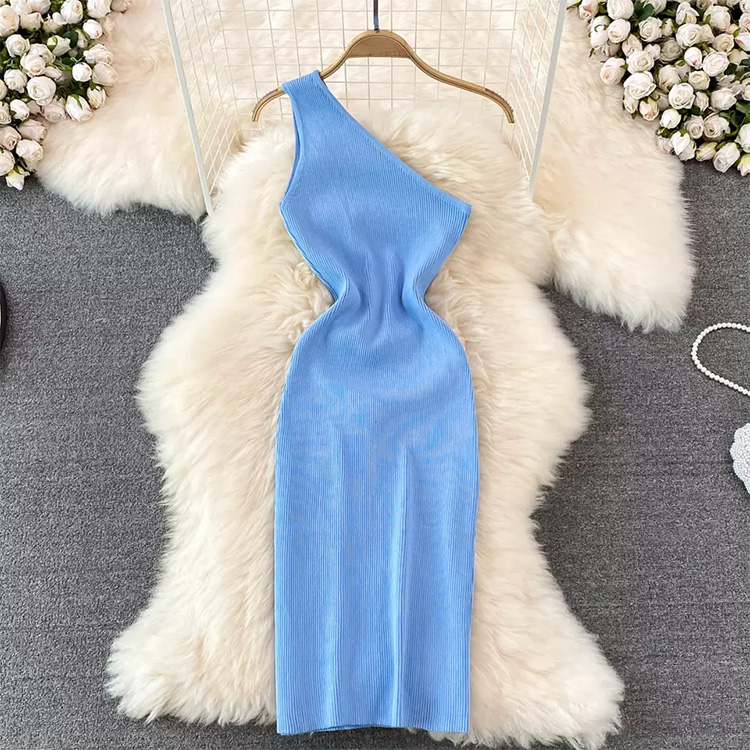 Women’s Summer Inclined Neck Off Shoulder Dress Blue