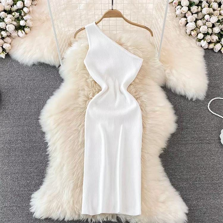 Women’s Summer Inclined Neck Off Shoulder Dress White