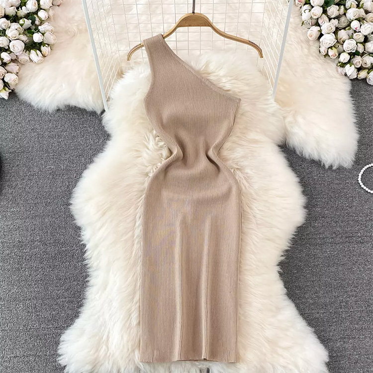 Women’s Summer Inclined Neck Off Shoulder Dress Beige